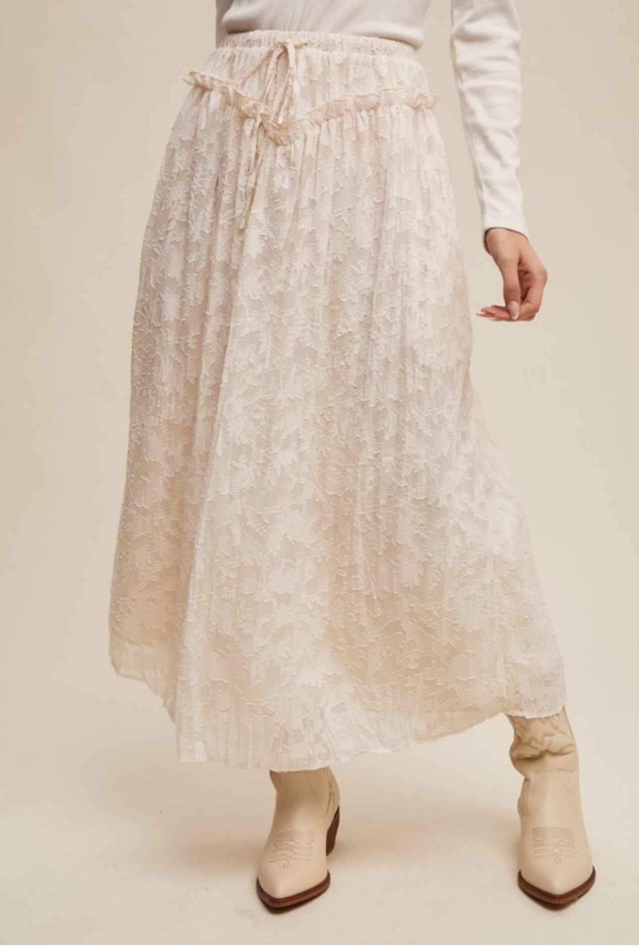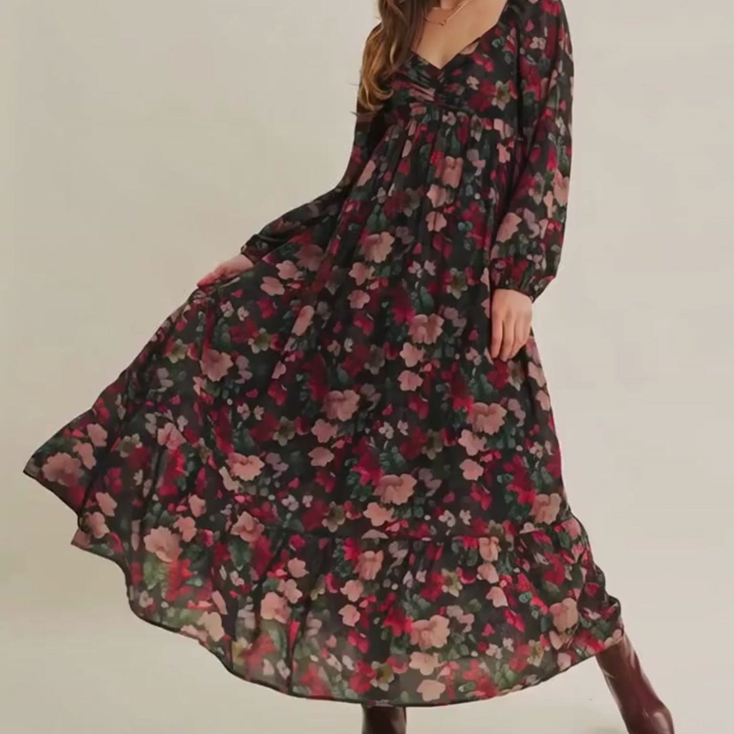 Valeria maxi Dress Vestido largo de encaje de manga larga escalonada